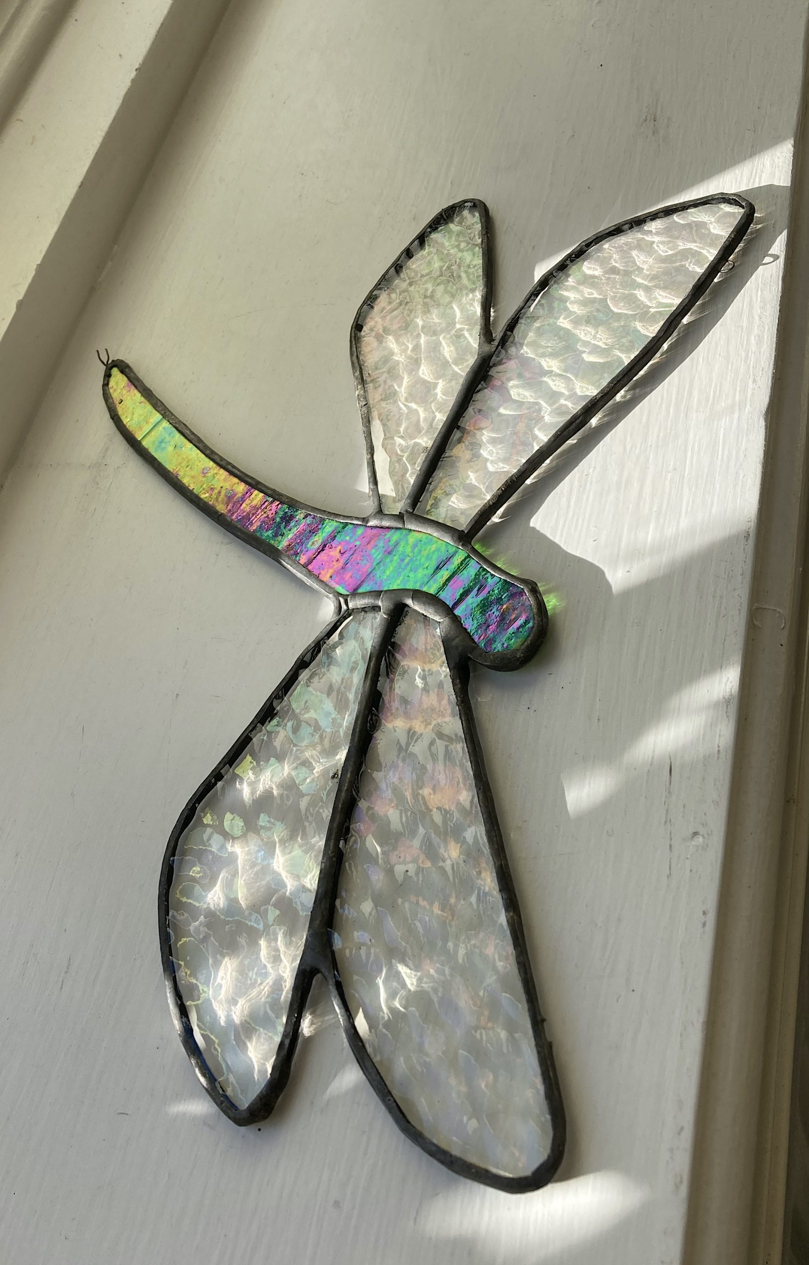 SKU: N/A Categories: All pieces, Insects & Birds Tag: Stained glass dragonfly - green/red/blue