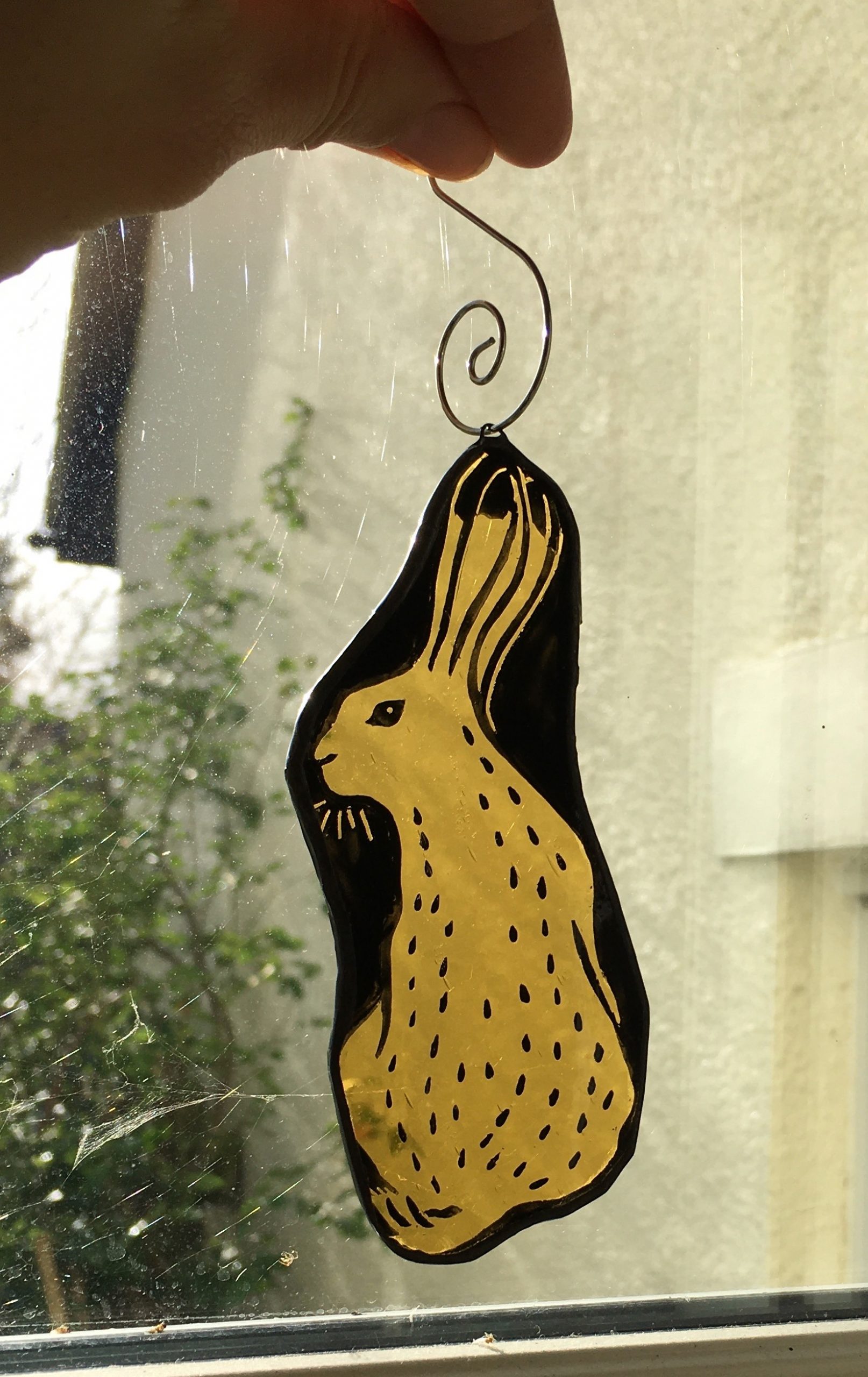 A hand crafted stained glass hare decoration to adorn your Christmas tree.