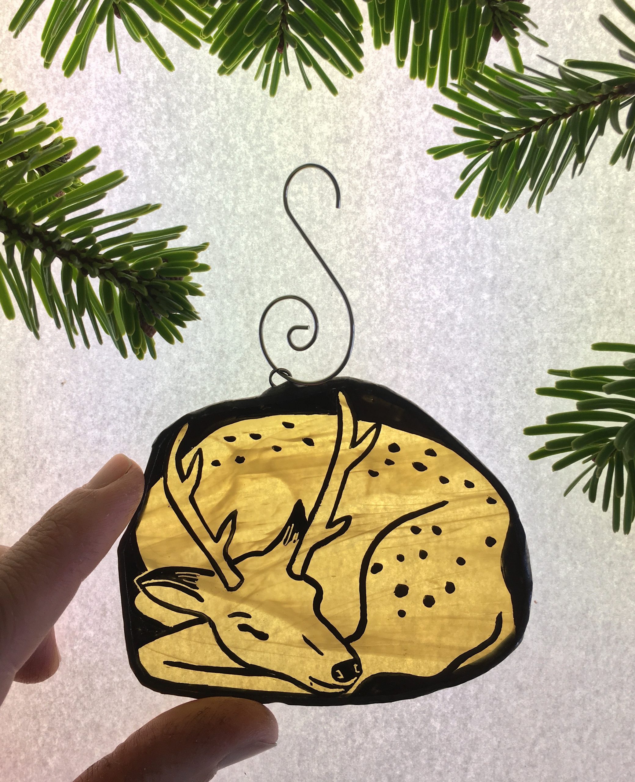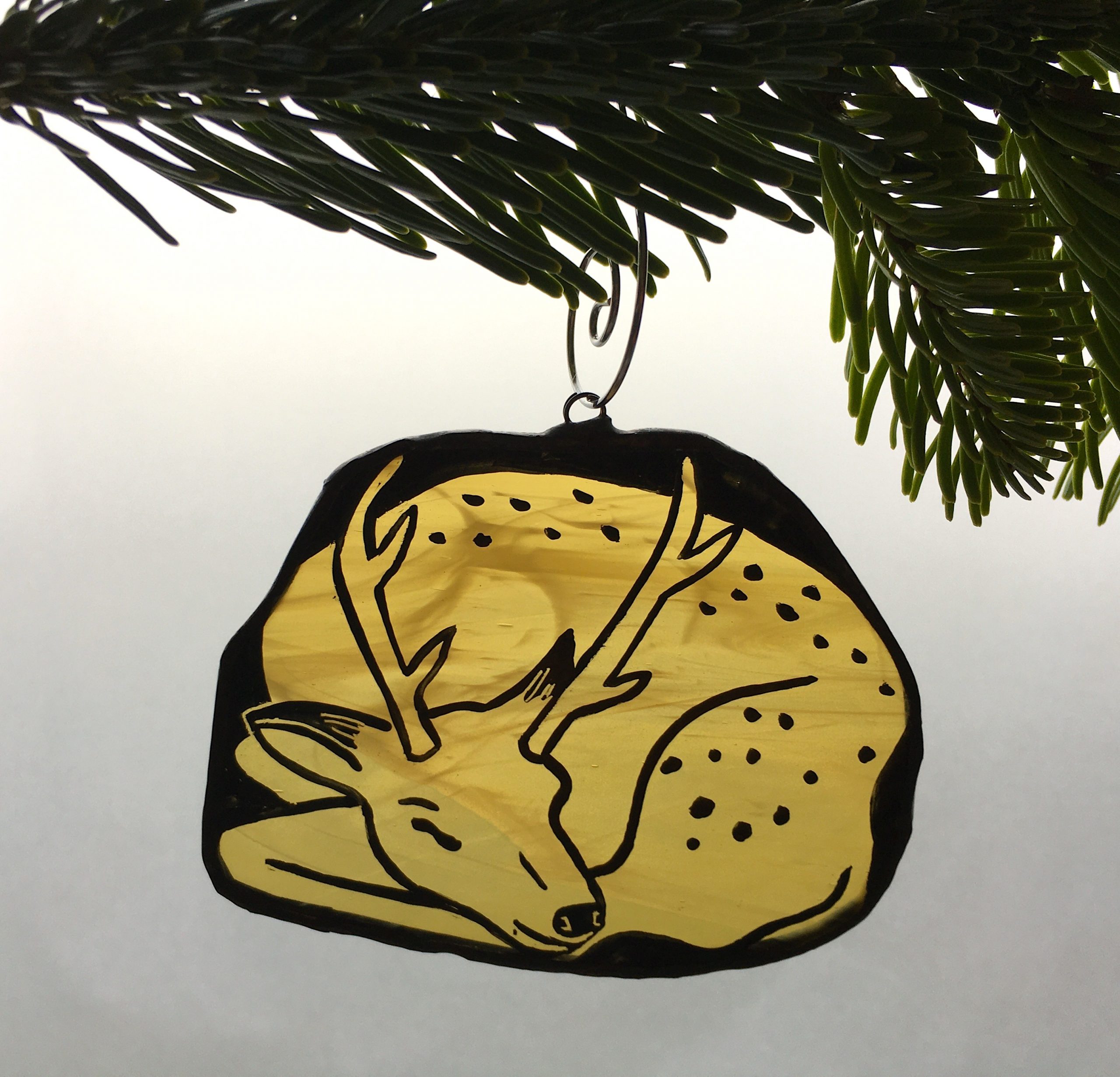 Stained glass sleeping deer Christmas tree decoration